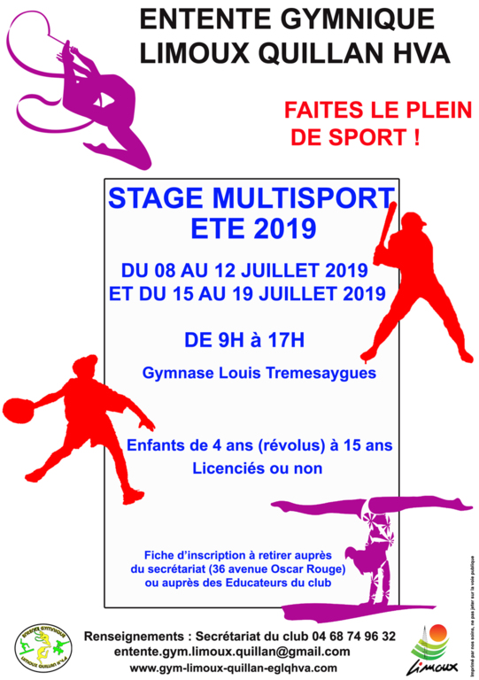 LE STAGE DE L'ENTENTE GYMNIQUE LIMOUX QUILLAN HVA EST DE RETOUR AU MOIS DE JUILLET !